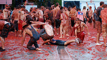 La Tomatina - всемирно известный праздник битвы помидорами.